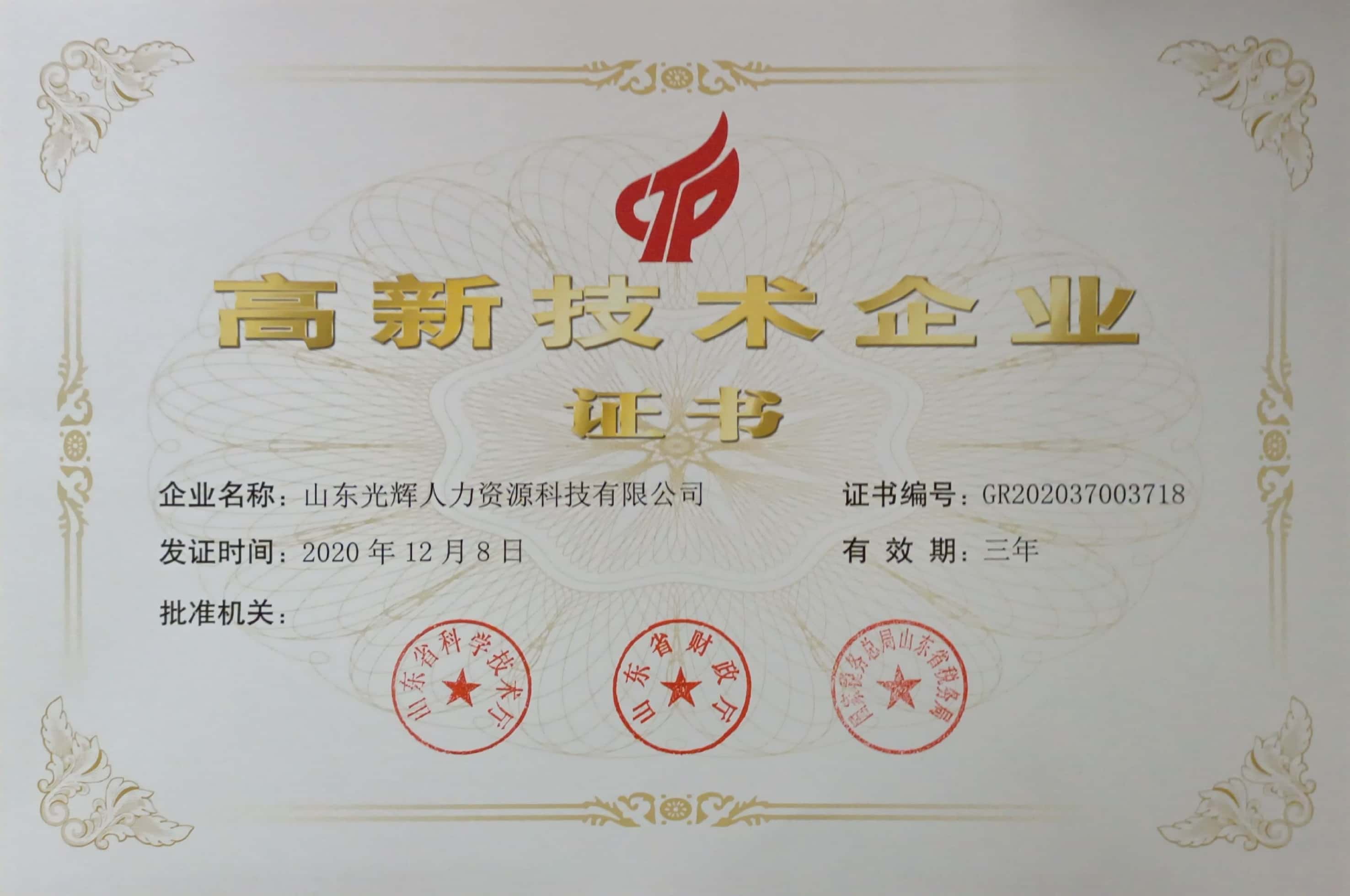 【喜報(bào)】山東光輝人力資源科技有限公司通過(guò)高企認(rèn)定